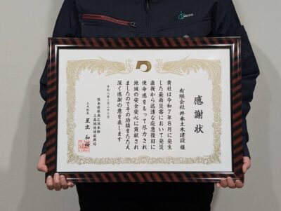 令和7年8月に発生した豪雨災害の復旧活動について、 この度感謝状を頂きました!